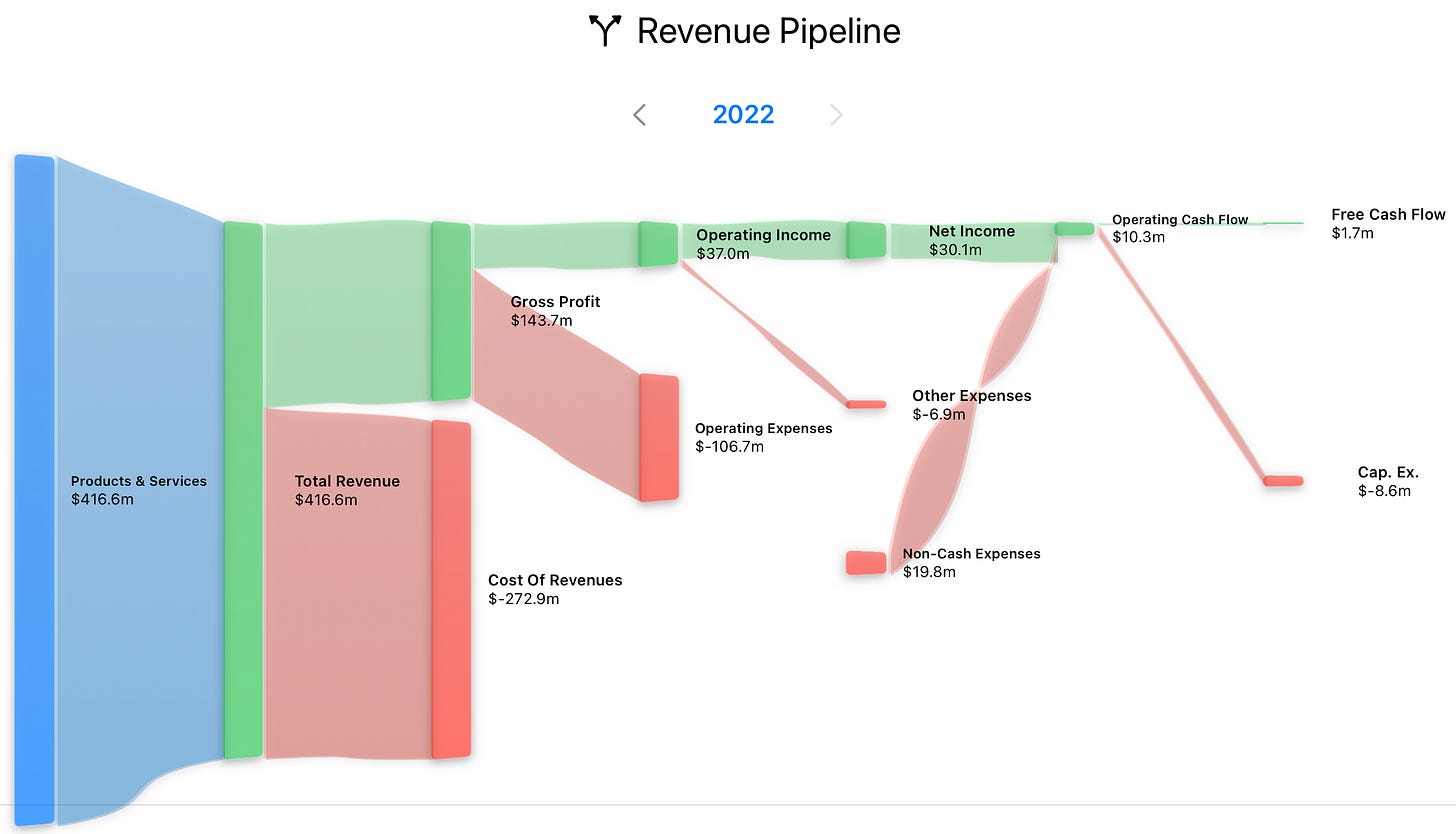 Looking at margins, we only need to compare 2019 and 2022. Fever-Tree went from generating $85m on $341.6m in revenue (a 25% free cash flow/revenue), to less than $1.7m in 2022 despite growing revenue to $416m (0.4% fcf/revenue!) in 2022.